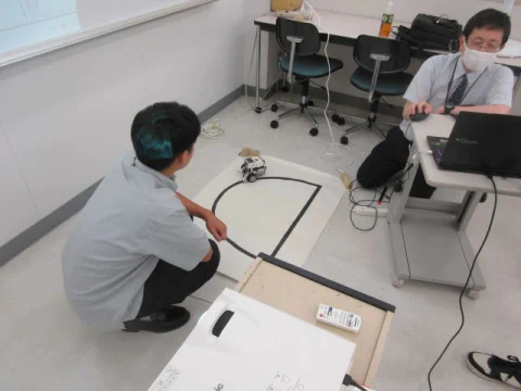 ロボットを用いたライントレース制御実験の様子(河邉先生)