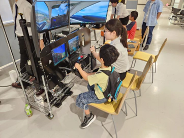 そらよかビジターセンターでは、宇宙航空システム専攻の学生が作成した移動式簡易シミュレーターの操縦体験(参加制限なし)を実施いたしました。