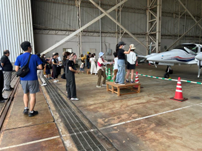 普段、身近に感じることが少ない小型機を間近に見ていただき、参加されたお子様から大人の方まで非常に興味を持ってくださり大変好評でした。また、担当した航空操縦学専攻の学生には、沢山の質問を頂戴しました。