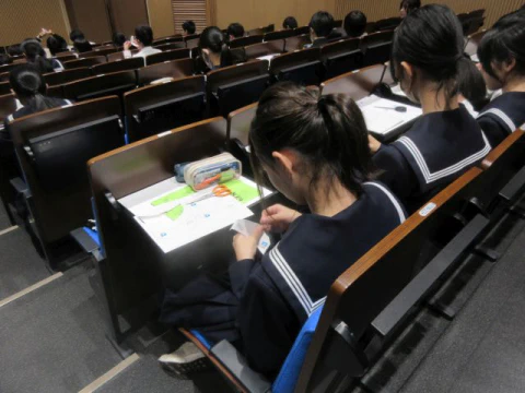 令和7年11月12日に熊本県立玉名高等学校附属中学校1年生の生徒さん(70名)が、本学のSoLAホールにて宇宙航空システム工学科の体験講義を受講しました。