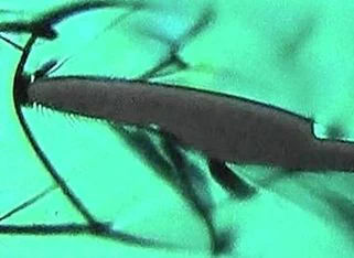シュリーレン法撮影画像の例(マッハ数1.8、模型の先端から発生した衝撃波が黒い線として観察されています)