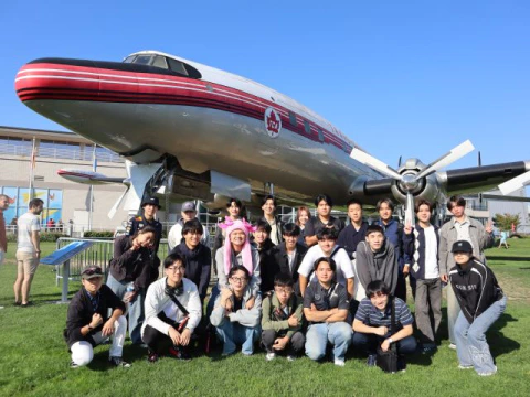 宇宙航空システム工学科では、航空機やロケット、宇宙機に関する知識を身に付けるために、航空宇宙関連施設や航空機製造工場などを視察する、海外研修旅行を行っています。これまで欧米の航空機メーカーや航空宇宙博物館などを訪問する約1週間のスケジュールで実施し、市内観光や自由時間のショッピングなどでも現地の人々との交流により英会話学習の意欲向上にもつながっています。